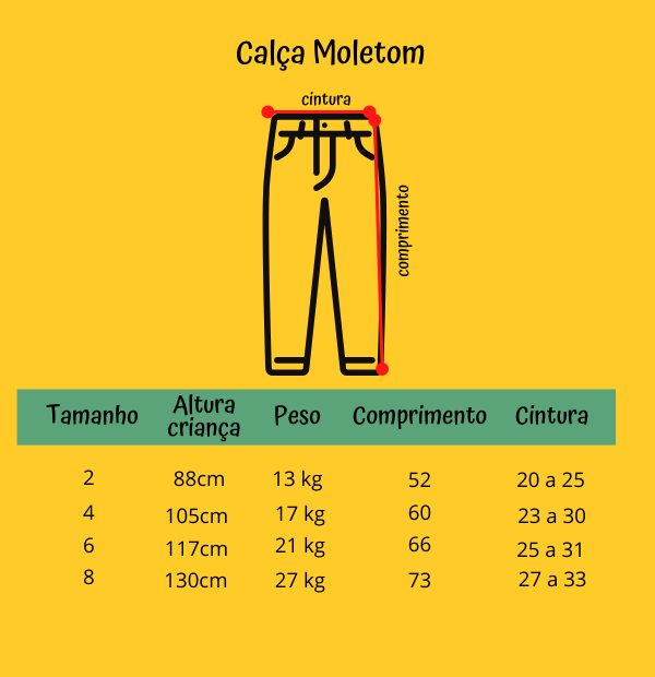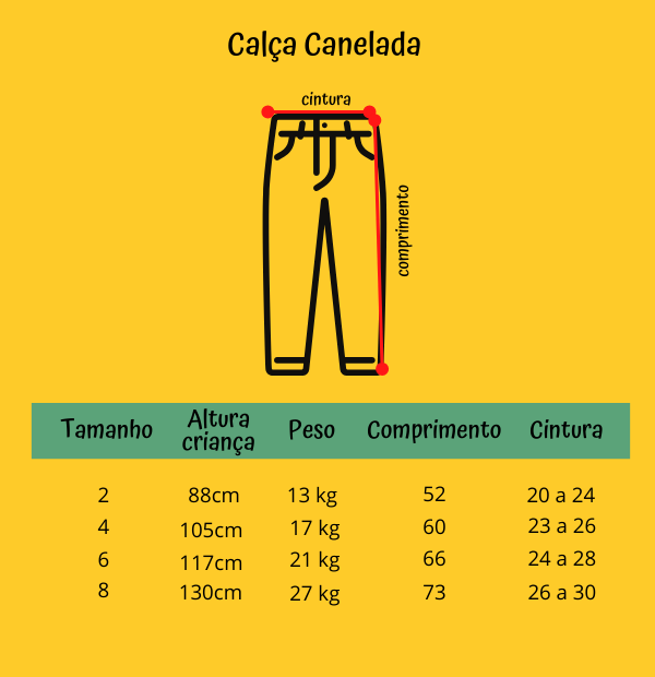 - Comprimento da Calça: Da cintura até o tornozelo.