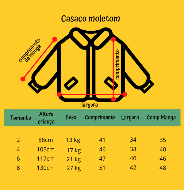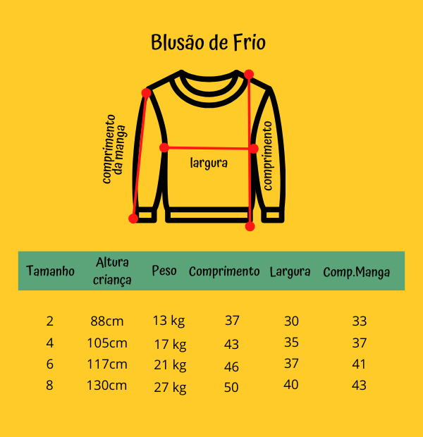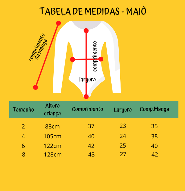 - Comprimento da Manga: Do ombro até o punho, com o braço ligeiramente dobrado.